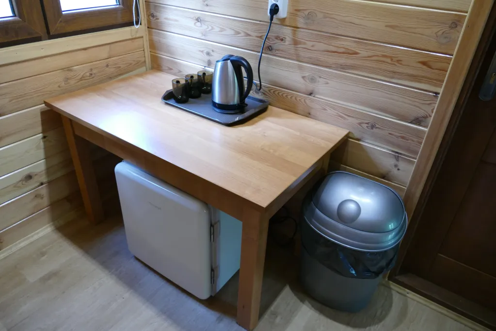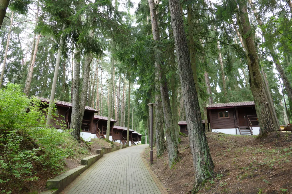 Domki wyposażone są w 3 łóżka, lodówkę, czajnik oraz pościel. Tuż obok znajdują się łazienki i toalety ogólnodostępne. To właśnie te domki położone są najbliżej jeziora, co czyni je idealnym wyborem dla miłośników natury i porannych kąpieli.